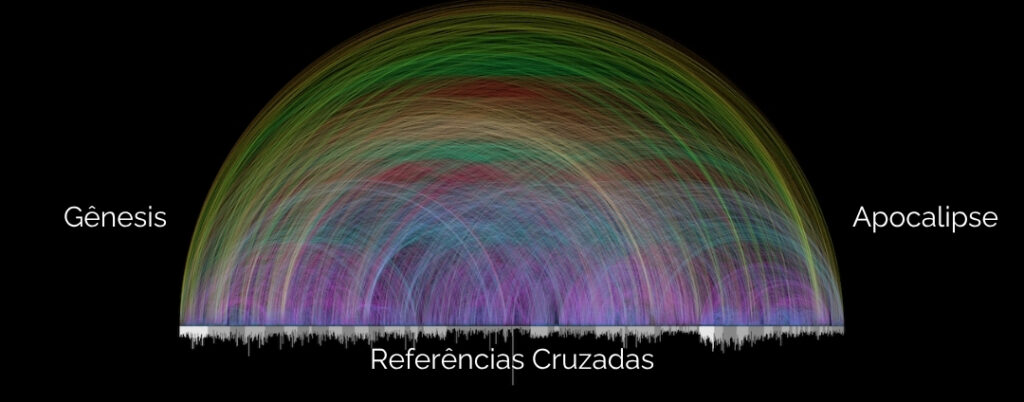 Aqui você contempla o famoso gráfico criado por Chris Harrison que ilustra 63.779 conexões entre o Antigo e Novo Testamento, com arcos coloridos mostrando a relação entre capítulos, sendo o Salmo 119 um dos pontos de maior densidade!